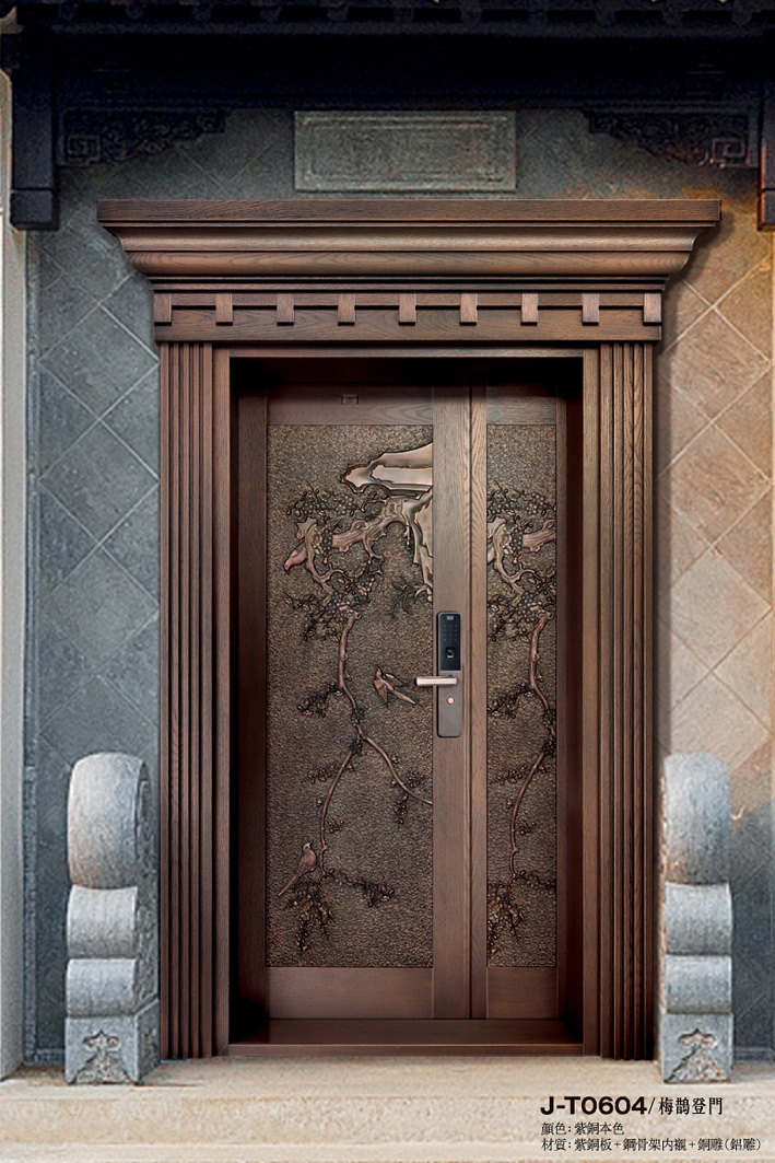 特殊加工:针对室外淋雨,为铜门做更为耐酸耐碱的特殊处理