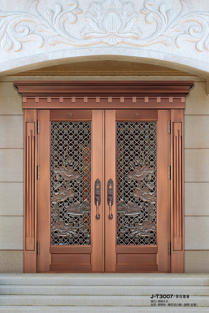 铜门产品名称:J-T3007荷花鸳鸯
