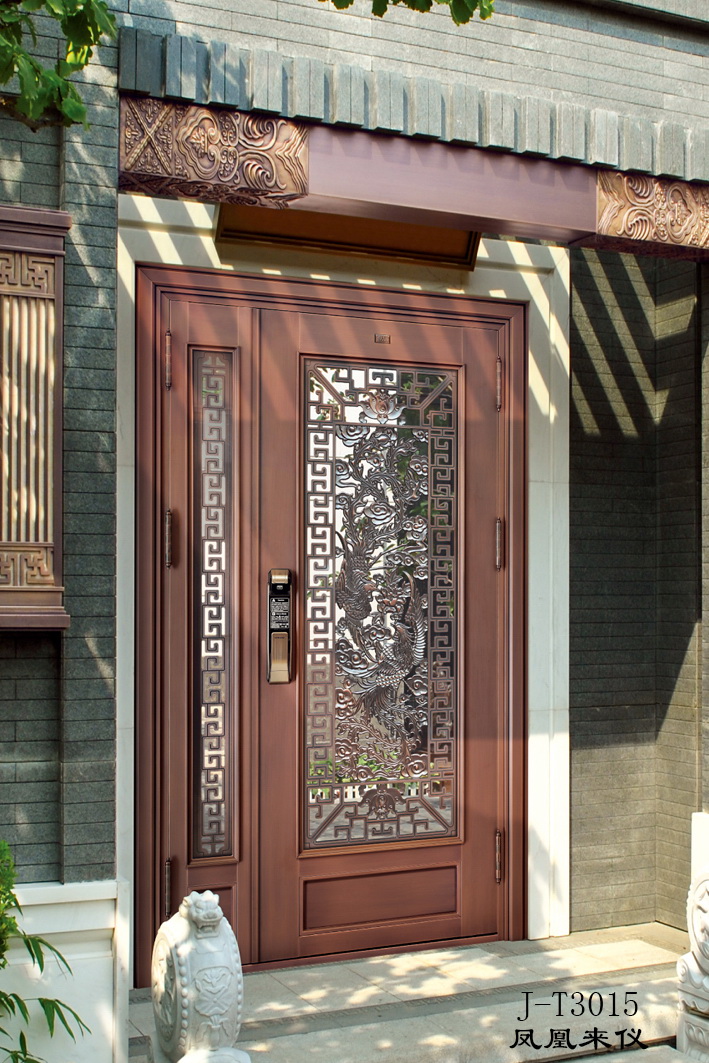 铜门产品材质:钢质内胆,外层为T2洛阳紫铜板